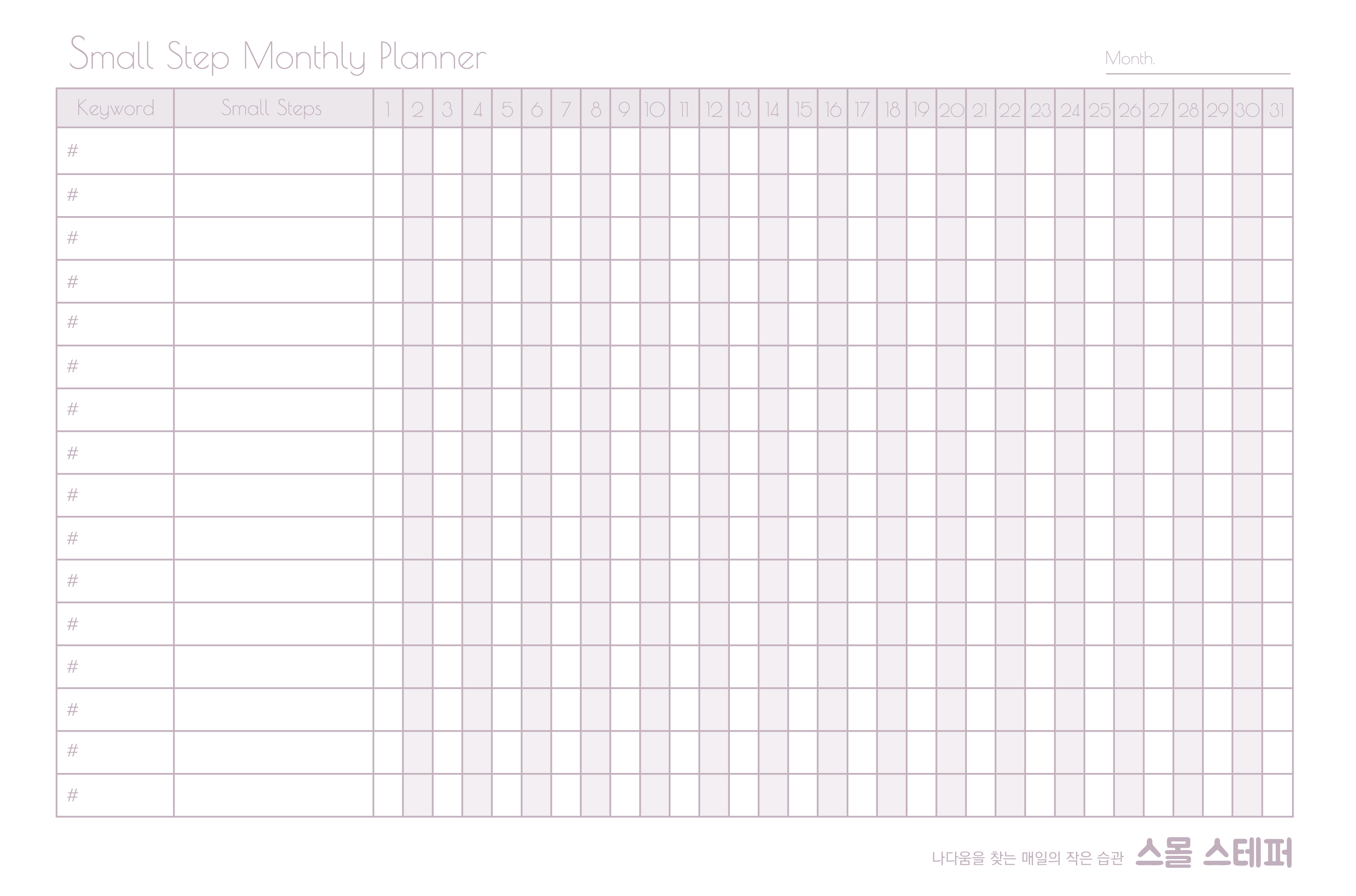 그리고 스몰스텝 플래너** - 계속해서 관리해 줘야 우리의 스몰스텝이 멈추지 않는다. 책에 소개된 천그루 나무 자료실에서 아래와 같은 스몰스텝 플래너도 유용하게 사용할 수 있을 것 같다.